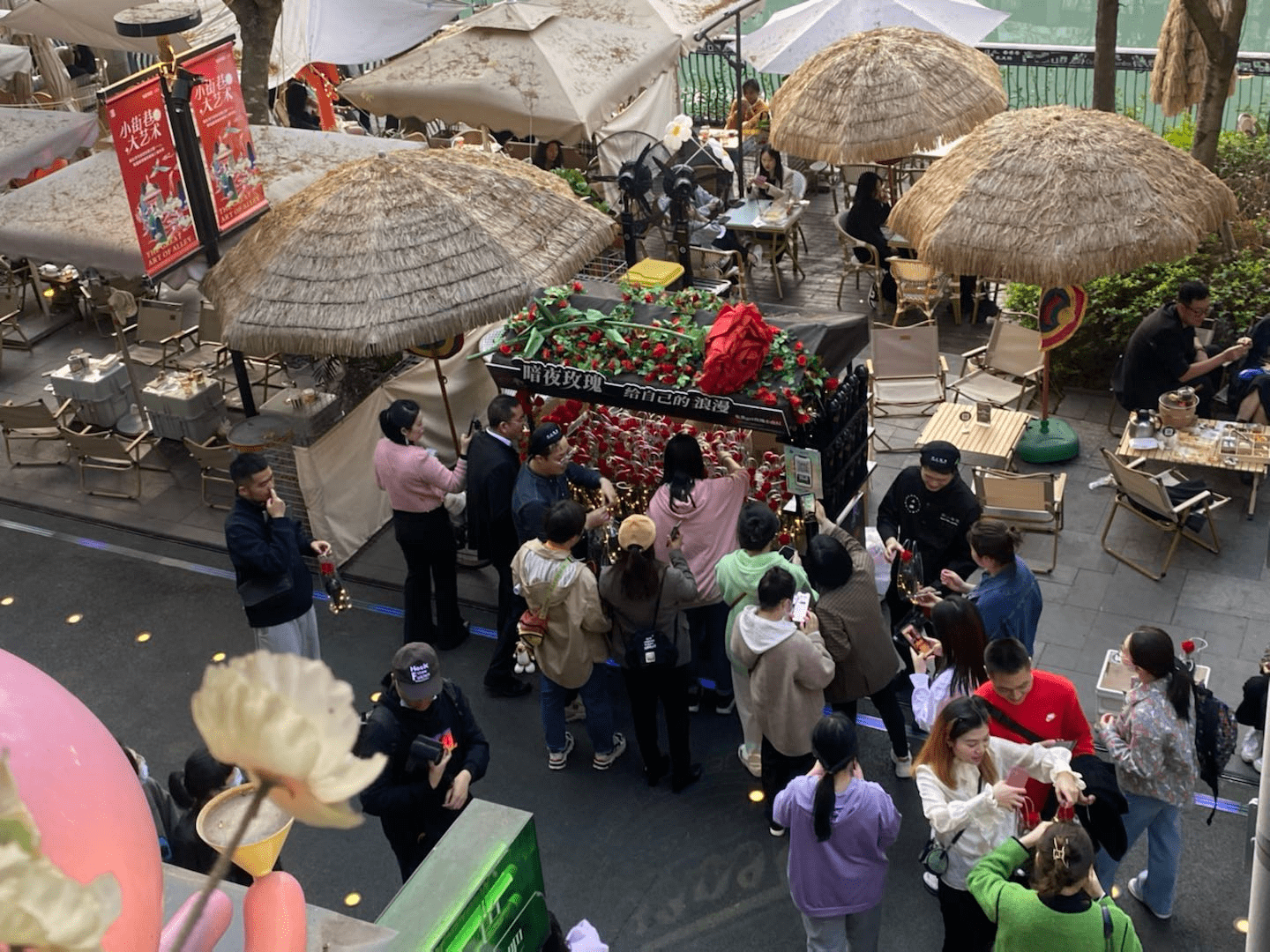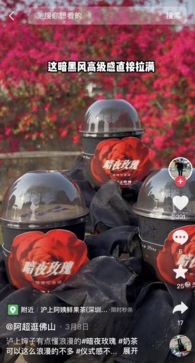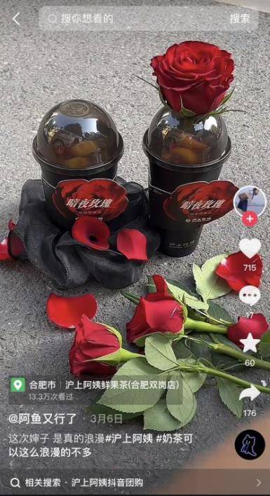 38妇女节活动期间,沪上阿姨以热点话题与内容进行线上预热,同时在天津、成都、深圳进行女神节玫瑰流动车快闪活动,承接线上热点打造线下营销事件与批量转化。在人流量大的街头派送玫瑰小夜灯,拉满浪漫的节日氛围。进一步实现为新品引流,线上与线上的串联促进营收转化。