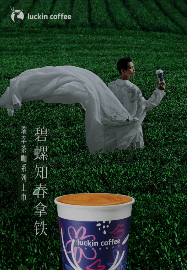 咖啡品类更是春日营销的主力军,3 月 6 日,瑞幸官宣新品「碧螺知春拿铁」,新品与被誉为「乡村超模」的陆仙人合作。在新品推介过程中,瑞幸不仅将直播间搬到了生茶园,打造沉浸式的直播体验,让用户在观看直播享受“宠粉式”福利的同时,感受到浓浓的春日氛围感。不仅如此,瑞幸邀约了一万名LV3以上的短视频达人,借助带货达人力量为瑞幸茶咖季种草引流,引发站内视频投稿数4.7万条。同期,瑞幸咖啡筛选了33位直播达人,在多城市开展了“瑞幸茶咖季”为主题的系列达人直播,通过直播达人承接品牌官方自播热度和流量。「春光好食节」营销节点中,通过短视频种草、官方直播及达人直播,以一系列别具一格的“茶咖大秀”实现破圈层营销,迅速完成种草全网,最终获得破亿的支付GMV。
